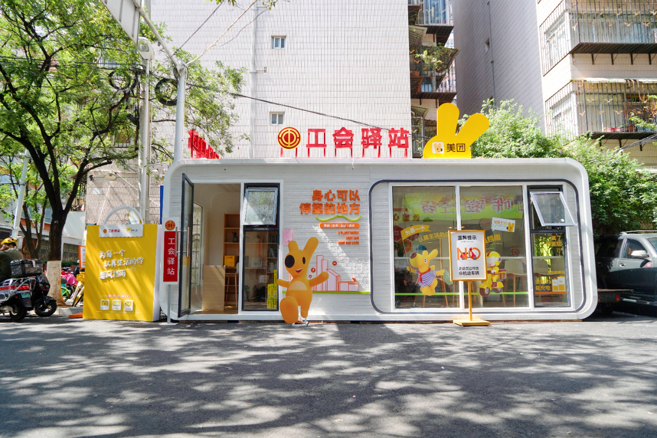 “这个工会驿站很不一样,除了工会的元素之外,还有很多美团的标识,看着就很亲切……就像是专门为我们量身定制的!”
