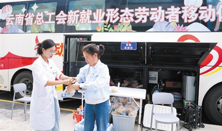 7月15日,云南省总工会新就业形态劳动者移动体检车开进麒麟区益宁街道社区卫生服务中心,为新就业形态劳动者提供便捷高效的健康服务,打通健康关怀的“最后一公里”。接下来,云南省总工会新就业形态劳动者移动体检车将继续开往沾益区、宣威市、会泽县和陆良县,为新就业形态劳动者解决“体检难、体检贵、体检远”问题。