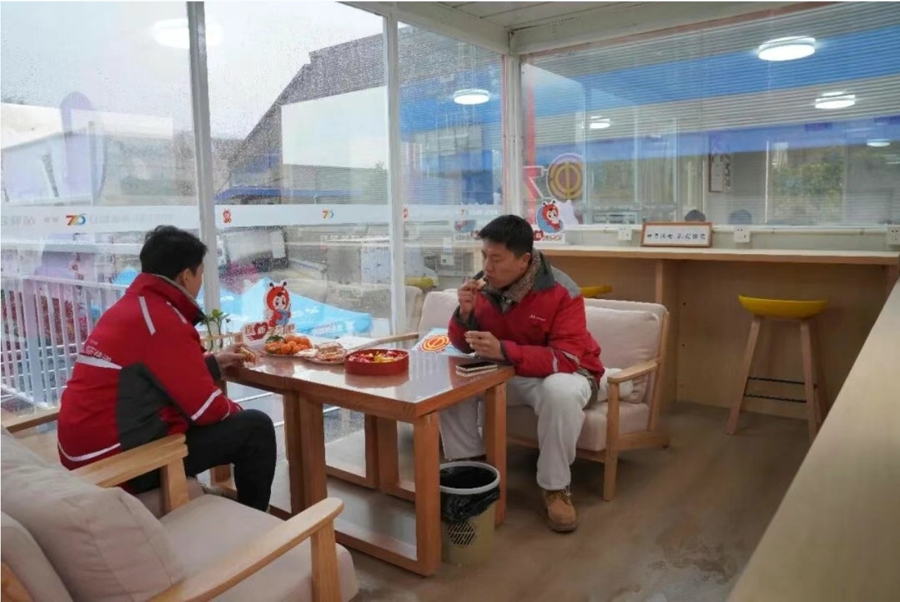 驿站外观以货车头为设计灵感,红白配色鲜明醒目,“来到阳宗海就是一家人”的标语暖意融融。除常规配置外,驿站贴心设置了热水器、洗衣机、烘干机、按摩椅等设备,并提供24小时不间断服务。“这些功能和服务,就是专门给我们设计的,每次来到这里,我们就有一种自己被尊重、被关心的感觉,心里暖暖的!”货车司机杨兴说,原来跑车路过这儿,就是加个水、自己在车上打个盹,自从有工会驿站之后活动就多了起来,通过参加活动还认识了好几个司机朋友,聊聊工作的同时,还对接了一些业务资源,所以不忙的时候,大家都喜欢在驿站坐坐,就像自己家一样。